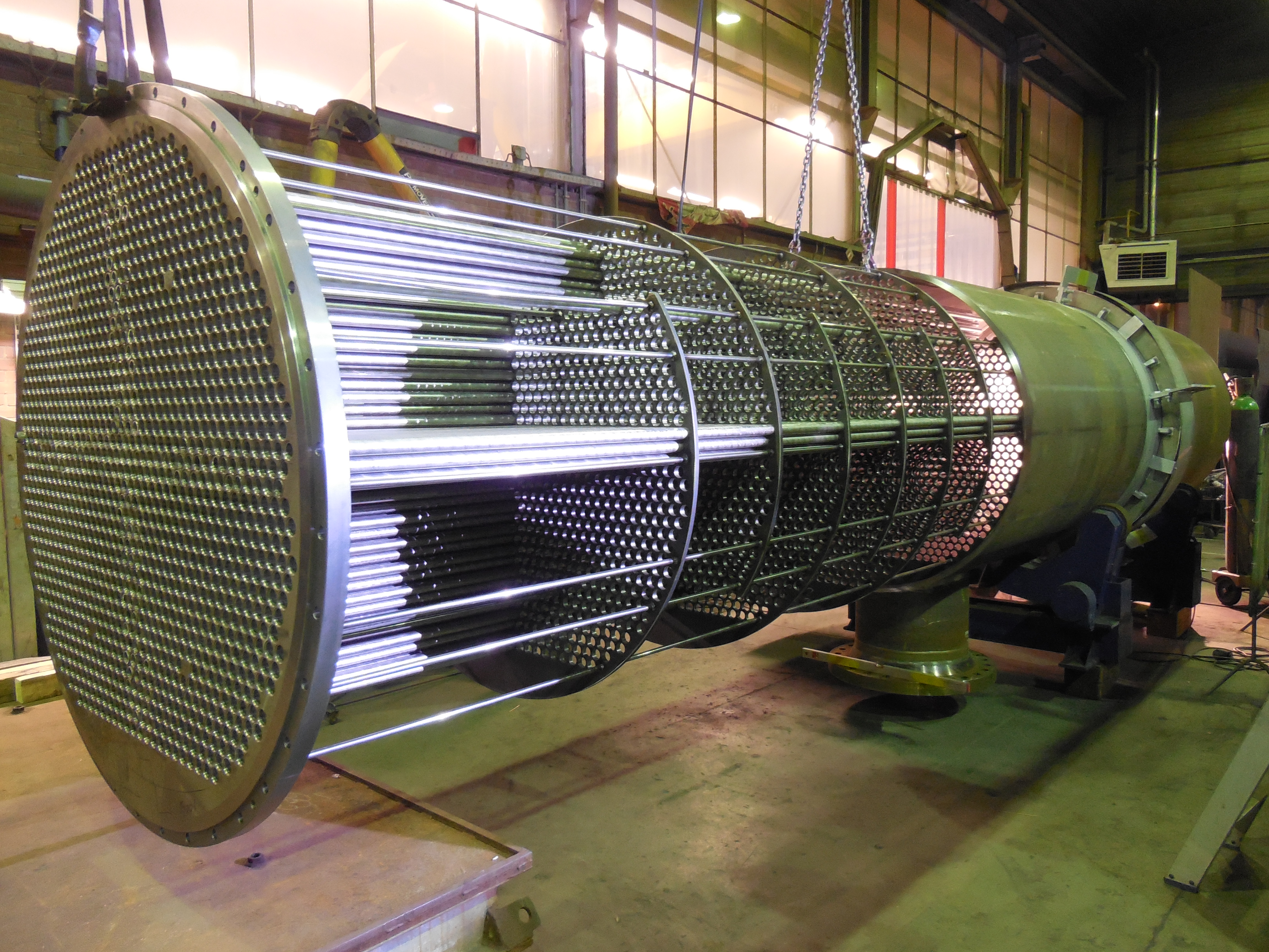 The most common are “Shell and Tube” heat exchangers. These Heat Exchangers exist out of three types; Fixed Tubesheet, Floating Head and U-Bundle. In a Fixed Tubesheet Exchanger the tubesheet is fixed to the shell. Thermal expansion is very limited but this can be compensated through an expansion bellow in the shell. In a Floating Head Exchanger the tubesheet at the rear end is not fixed but allowed to float, which allows for thermal expansion and the tube bundle to be removed for cleaning. An U-Bundle allows for “unlimited” thermal expansion and the tube bundle to be removed.